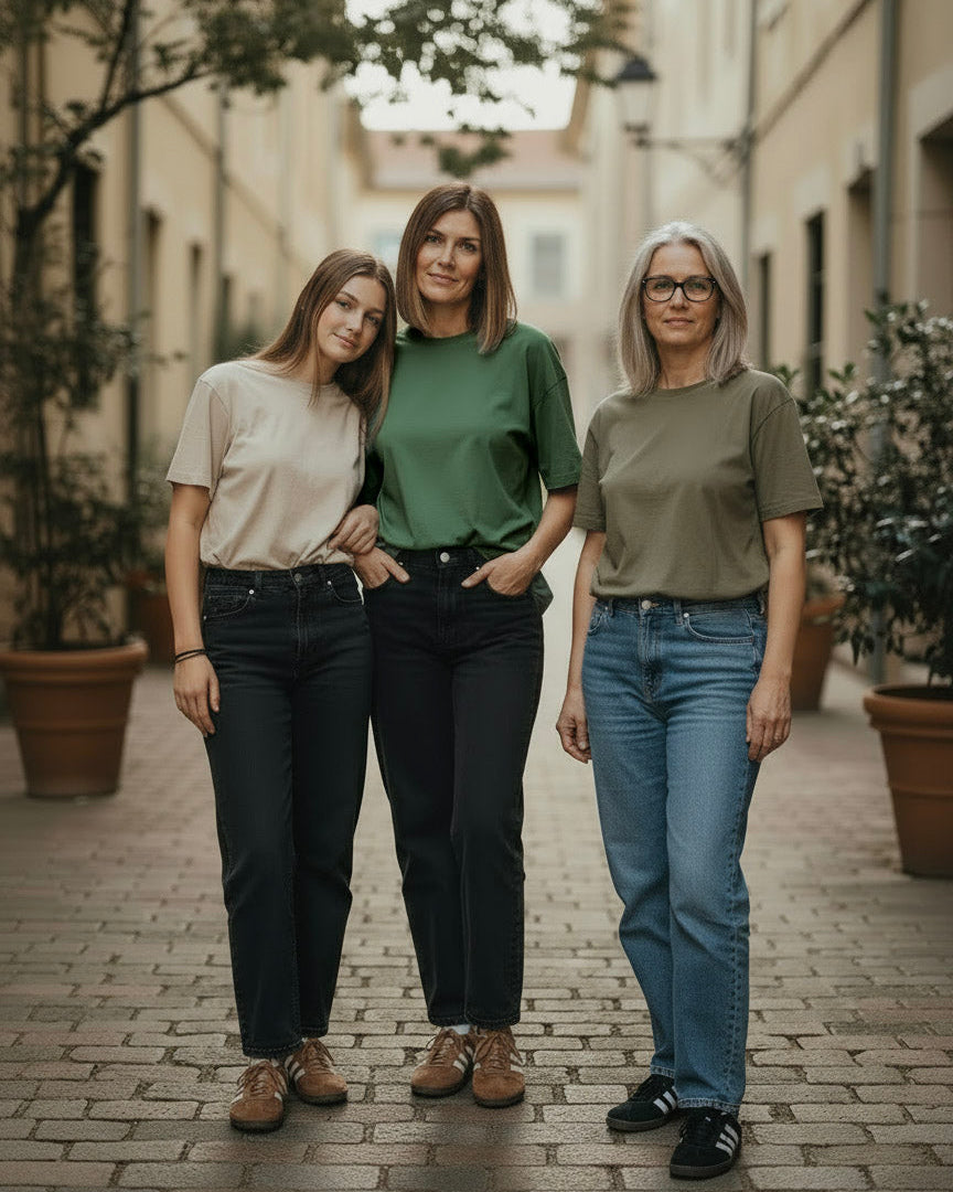 All of our tees are silky soft and comfortable. Made from natural bamboo and cotton fibers. Dyed with non-toxic, eco-friendly dyes. These are meant to be oversized, so order true to size.